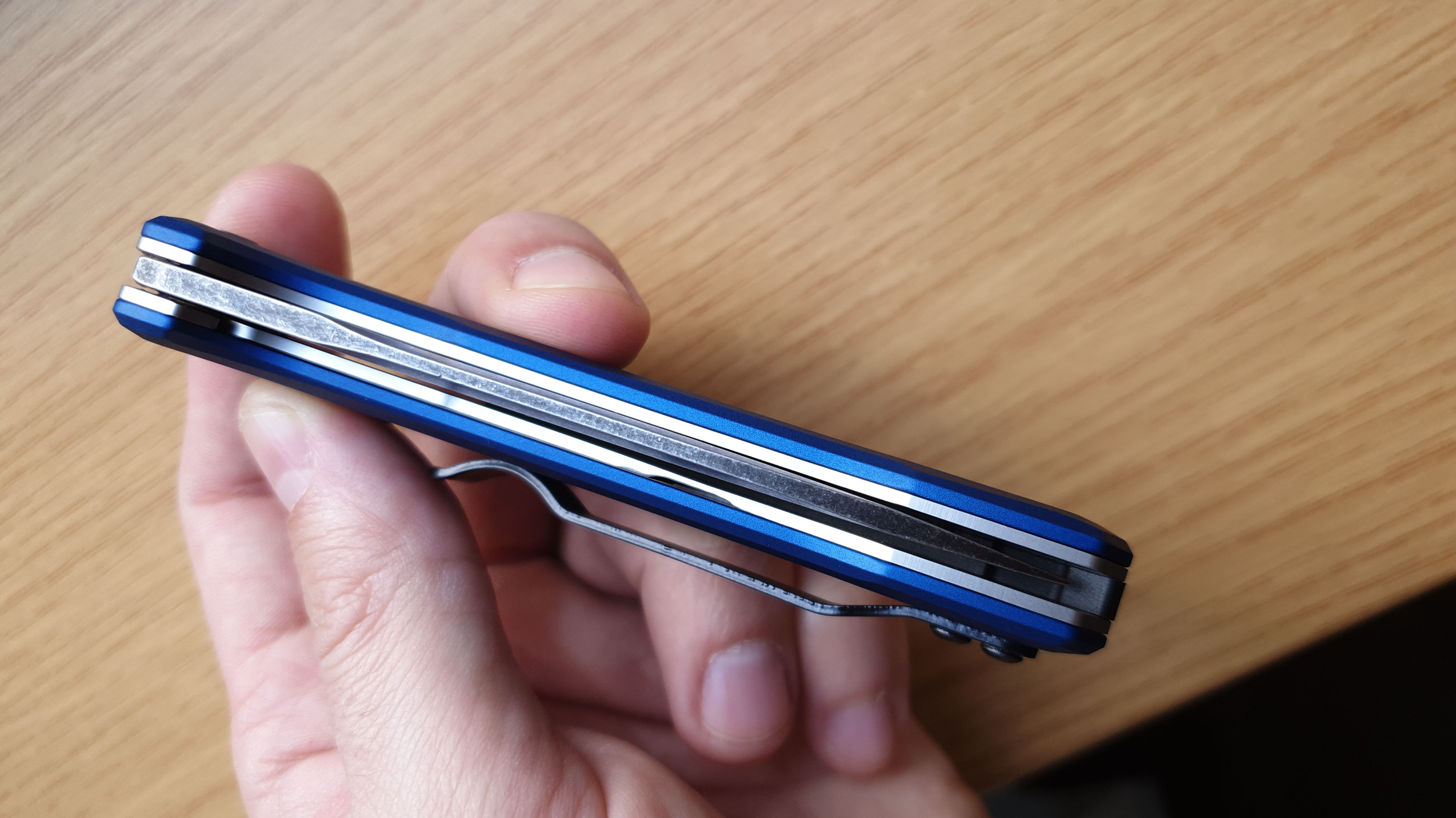 Нож что называется лёг в руку. Удобен, превосходно режет, по крайней мере по продуктам вообще без вопросов - помидоры, хлеб, сырокопчёная колбаса, картошка, сыр. Даже пришлось распарывать шов на трикотаже, за счёт заточки и формы клинка справился не хуже лезвия. Зачётный нож. Единственно что хотелось бы клипсу глубокой посадки, но если честно, то в кармане и так не напрягает да и видно его не сильно.